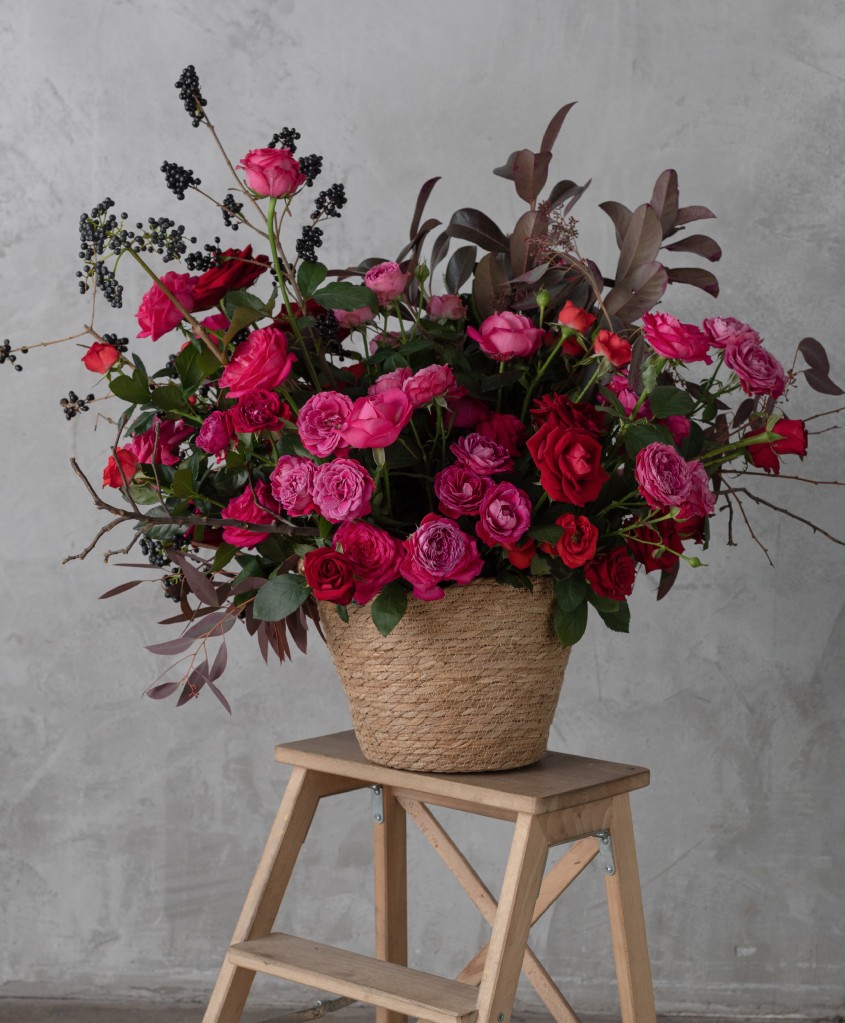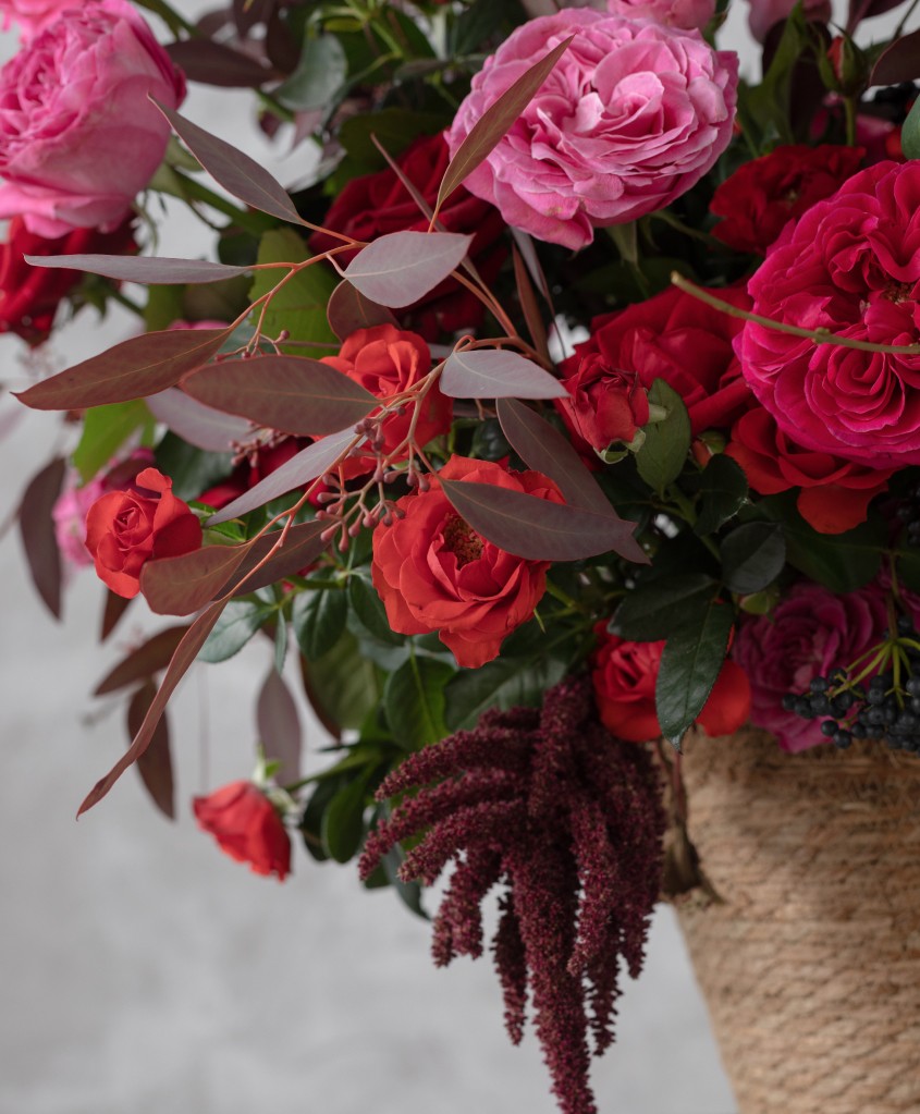 Композиция в корзине, "Гранатовый браслет"